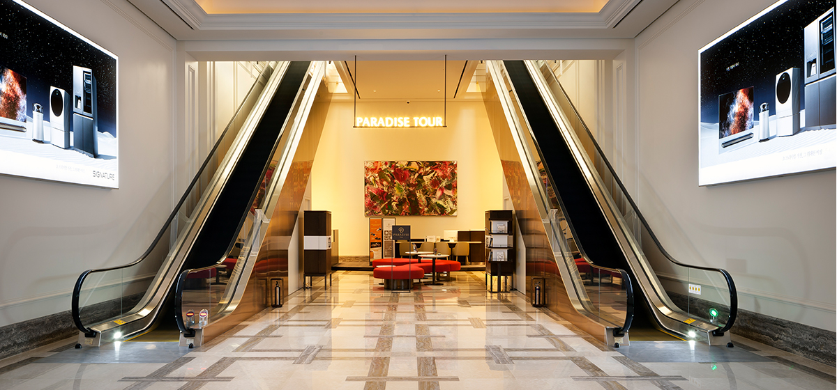 The S series escalators are made for hotels, shopping malls and office buildings, featuring a compact design and energy-saving mode with automatic operation. Radar sensors detect approaching passengers, restarting escalators as needed. The inverter with MSTVF control adjusts speeds based on traffic flow at different periods of time, optimizing motor efficiency and minimizing energy use. Long-lasting LED lights on handrails, combs, and under-step lighting consume 75% less power than traditional fluorescent lights, further enhancing energy savings.
