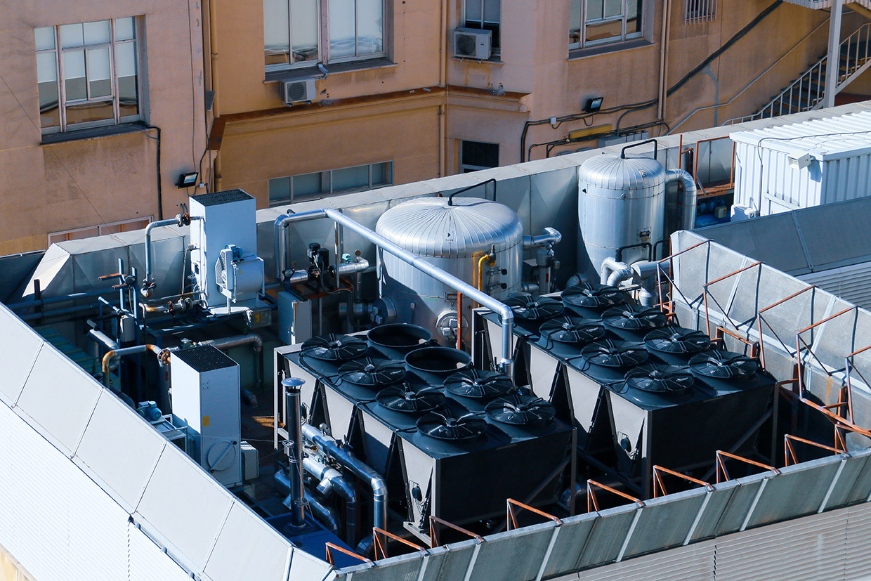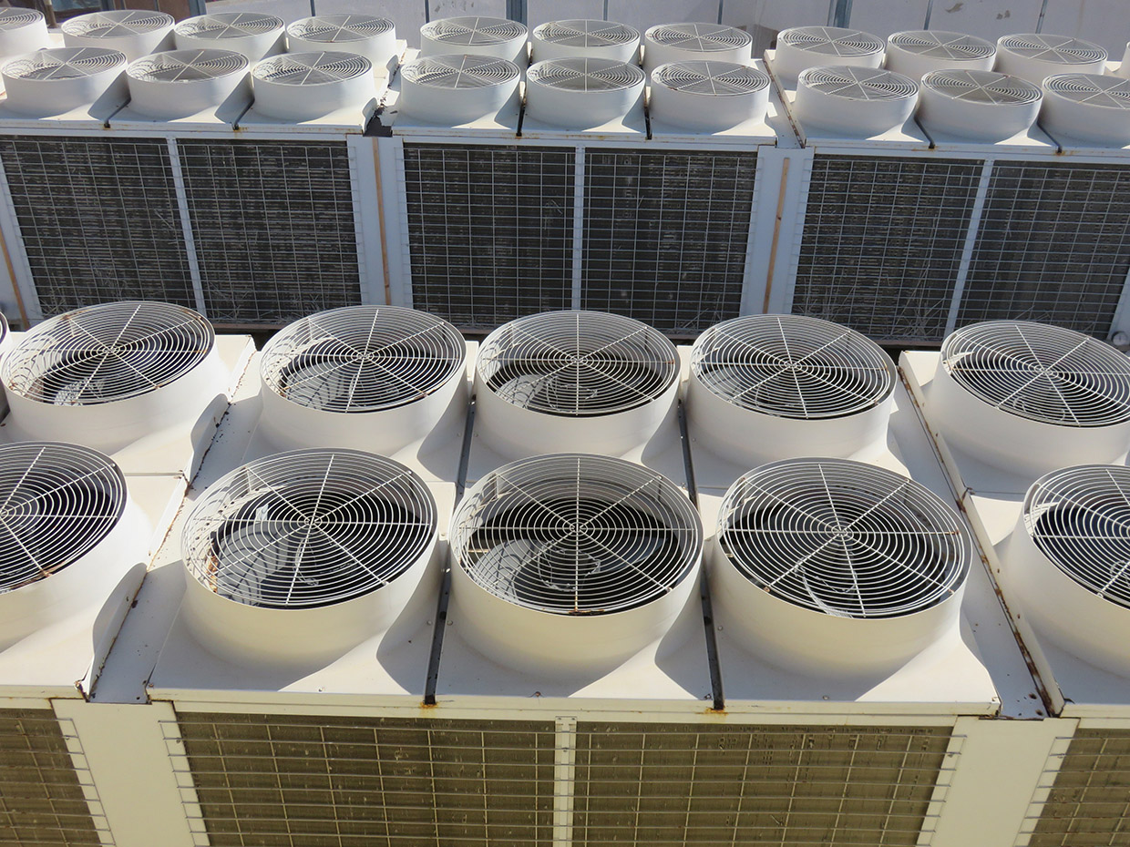 Chillers are widely used in large shopping malls across Asia. A chiller is an air conditioning unit that circulates chilled water through pipes located in walls, ceilings or floors resulting in cooler temperature. The efficiency of a water-cooled chiller can be up to twice as good as an air-cooled VRF or chiller (