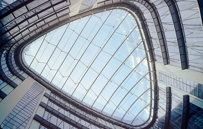 The Texlon® ETFE system is a lightweight and transparent material used for roofs and façades adaptable to various architectural and environmental requirements. It helps save energy by letting in natural light, reducing the need for artificial lighting, and providing insulation to regulate indoor temperatures. With low environmental impact, it is applicable for both new construction and refurbishments. Additionally, its translucent design creates visual effects, especially when lit up at night, making it a popular option for modern shopping malls and other large, open spaces.