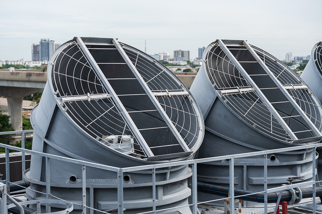 A closed cooling tower is a type of heat exchanger that cools water or process fluid by using air and a heat exchange coil. The KCH series features a multi-modular design with a condensing coil and PVC fill to enhance heat transfer efficiency. In this system, water is circulated over the fill, while air is drawn through it, causing evaporation to cool the water. The process combines evaporative and sensible cooling, reducing scale build-up and minimizing water evaporation. Unlike open cooling towers, which expose water directly to the atmosphere, closed cooling towers recirculate water in a closed loop. This reduces water loss and the need for a constant supply of fresh water, making them more water-efficient. Closed cooling towers are especially beneficial in industrial and HVAC applications, with available configurations such as crossflow and counterflow for different operational needs.