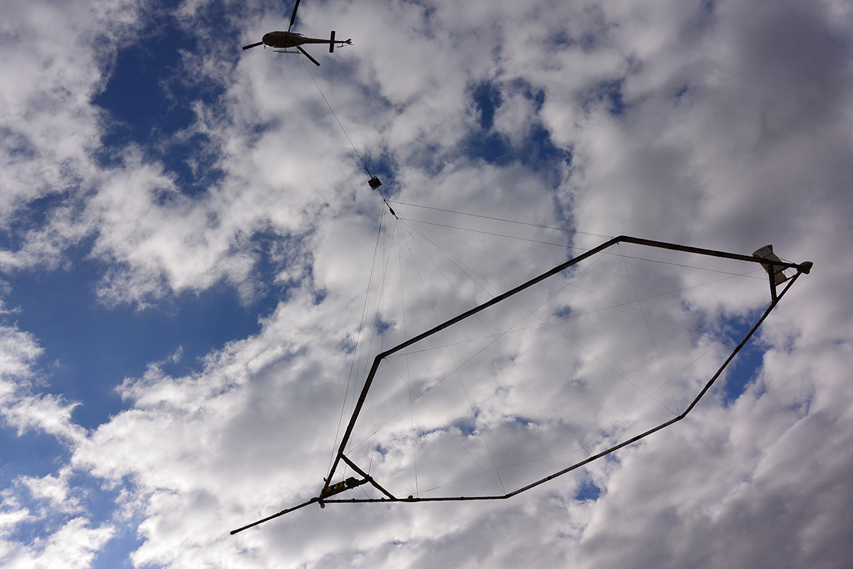 SkyTEM uses airborne geophysics to map the top 600 m of the subsurface in 3D. Its system measures electrical conductivity (or resistivity) and can also include sensors for magnetic susceptibility and natural radioactivity (potassium, uranium, thorium). Variations in these parameters reveal changes in mineralogy, moisture content, stratigraphy, porosity, and salinity—critical factors for groundwater studies. Airborne electromagnetic (AEM) surveys detect conductivity and resistivity variations to locate aquifers, track water quality, and assess salinity. Magnetic surveys map variations in magnetite content, aiding geological interpretation, while radiometric surveys detect natural gamma radiation to identify soil and rock types. Sensors mounted close to the ground beneath the aircraft capture subtle variations with high resolution, enabling water managers to visualize and manage groundwater resources efficiently and sustainably without invasive drilling.