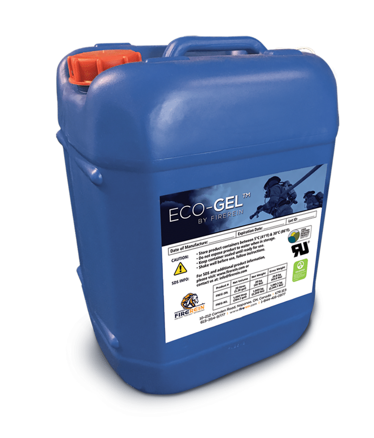Eco-Gel™ is a non-toxic and biodegradable plant-based firefighting water additive. It is the first firefighting gel to be Underwriters Laboratories listed for both Class A (ordinary combustibles – wood, paper, vegetation) and Class B (flammable liquids – gasoline, oil, chemicals) fires, making it effective for a wide range of fire scenarios. When mixed with water, Eco-Gel™ creates a hydrogel that clings to surfaces – vertical, horizontal, and overhead – providing protection for firefighters and preventing fire re-ignition. Its food-grade ingredients make it exceptionally safe, and it has been certified by the United States Department of Agriculture’s BioPreferred Program. FireRein also offers the FireRein TPP™ (Through Pump Proportioner) system, which enables users to introduce Eco-Gel™ into a firefighting water stream, adjusting its viscosity as needed. The product has a shelf life of five years.