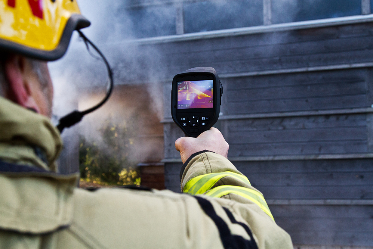 The FirePRO Series provides cost-effective, lightweight thermal cameras that enhance firefighter safety and efficiency. The FirePRO 300 features a 320 × 240 resolution sensor, while the FirePRO 200 offers 200 × 150 resolution. Both models use Seek’s Mixed Gain Mode, allowing firefighters to observe both hot and cool areas in a single image, making thermal imaging more intuitive. The cameras are useful in low-visibility conditions, detecting heat signatures through smoke, darkness or haze to locate hotspots and people, and monitor fire progression. Thermal cameras also support coordination with aerial units such as drones, improving firefighting efficiency, and can help in post-fire assessments to identify remaining heat sources and prevent reignition.