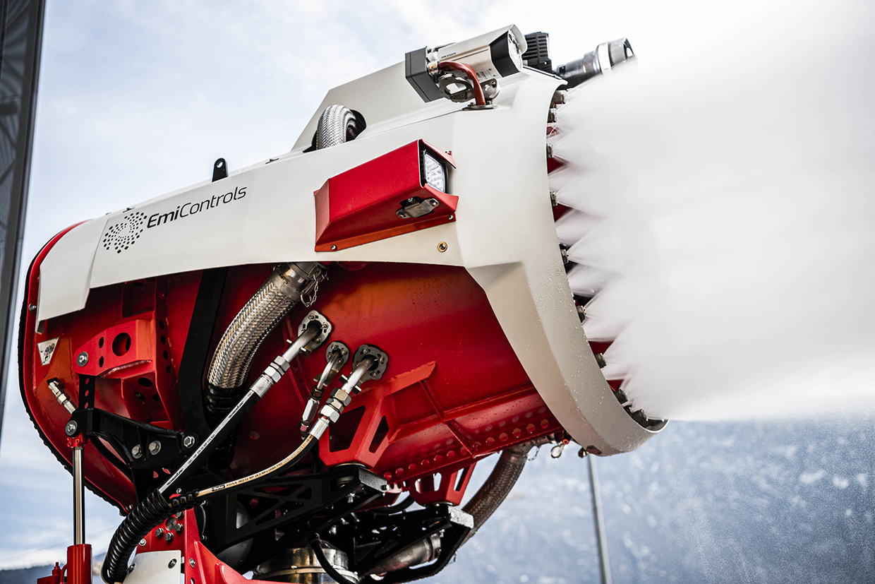 A firefighting turbine uses highly efficient fire safety technology that atomizes water, foam or a mixture of the two into fine droplets, creating a large surface area for enhanced heat absorption. This mist envelops objects and reaches hidden fire sources, making it more effective than conventional water jets. The technology offers high cooling capacity with low water consumption and can deliver water mist with pinpoint accuracy at low pressures. Available in both stationary and mobile set-ups, the turbines can integrate with any fire detection system for fully automatic deployment, or be incorporated into a firefighting robot or fire truck. They can also be remotely controlled at distances up to 300 m.