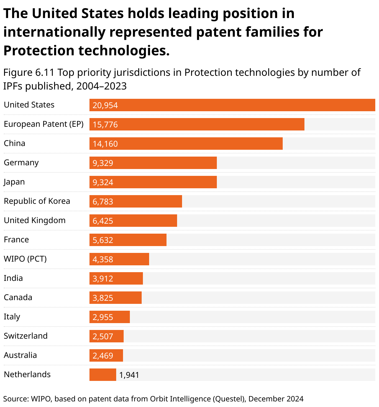 Global patent landscape: A broad analysis of the global Protection patent landscape is conducted, publication trends examined, the most innovative regions or countries identified, and key players driving advancements in the field of Protection technologies profiled.