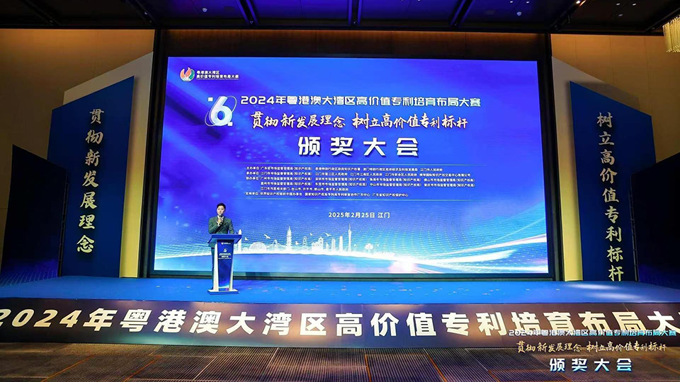 On February 25, 2025, the 2024 Guangdong-Hong Kong-Macao Greater Bay Area High-Value Patent Cultivation Layout Competition Award Ceremony (GBA IP Competition) was held in Jiangmen City, Guangdong Province.