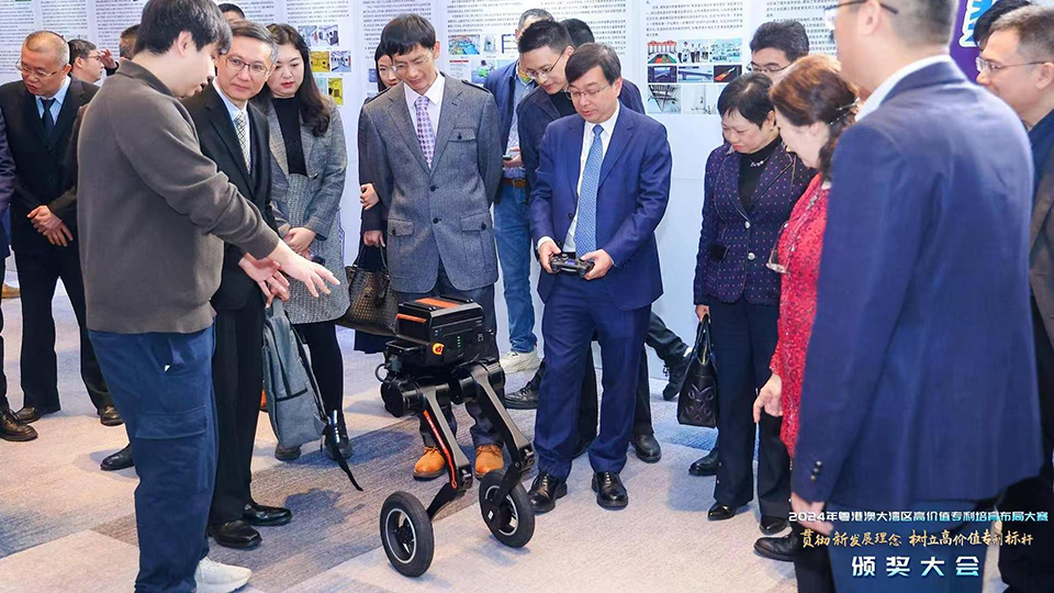 The event was co-hosted by the Guangdong Intellectual Property Administration, the Intellectual Property Department of the Hong Kong Special Administrative Region, the Economic and Technological Development Bureau of the Macao Special Administrative Region, and the Jiangmen Municipal People’s Government. Mr. Bai Guangqing, Senior counselor of the World Intellectual Property Organization (WIPO) Office in China, was invited to attend the award ceremony and deliver a speech. Leaders from the China National Intellectual Property Administration, Guangdong Intellectual Property Administration, Hong Kong Intellectual Property Department, Macao Economic and Technological Development Bureau, and Jiangmen City also attended and addressed the ceremony. This year’s competition theme was: Implementing New Development Concepts and Establishing Benchmarks for High-Value Patents. An exhibition area for award-winning projects was set up at the venue, showcasing high-value patent achievements from cutting-edge projects in industries such as biomedicine, next-generation information technology, new materials, and energy conservation and environmental protection. Over 300 representatives from various sectors attended the event.